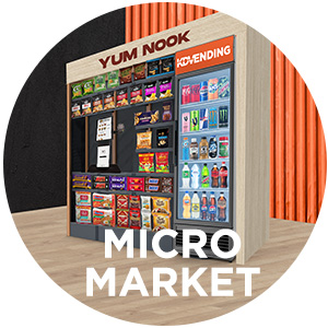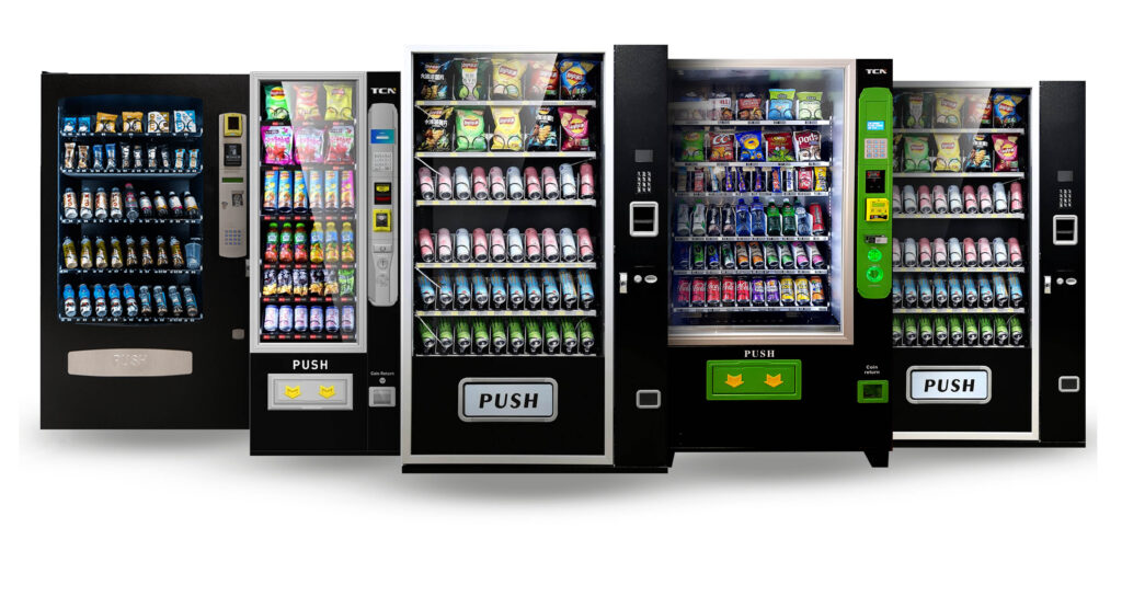 - Dedicated drink, snack, healthy, and coffee vending machines